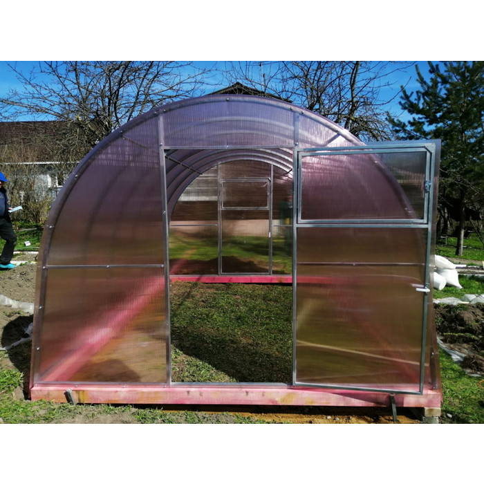 • практичный каркас с дверьми в каждом торце обеспечивает легкий доступ в теплицу и её проветривание
