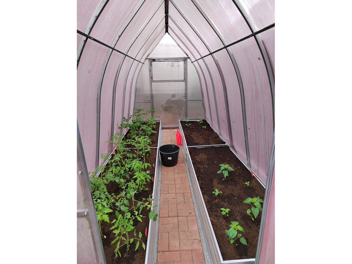 • компактность за счет небольшой ширины теплицы (2,1 метра)