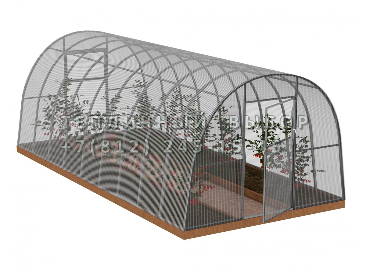 • практичный каркас с дверьми в каждом торце обеспечивает легкий доступ в теплицу и её проветривание