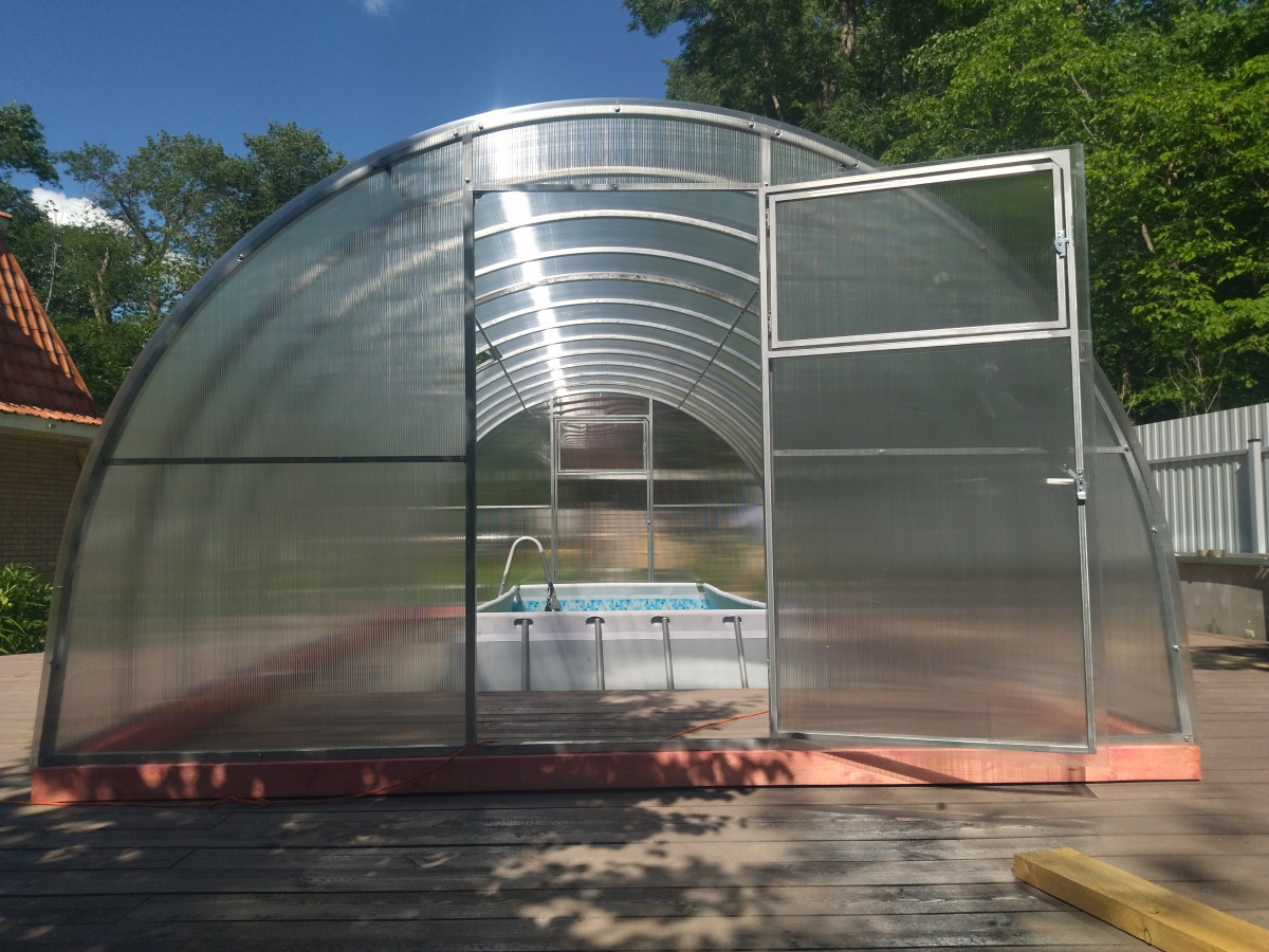В разобранном виде теплица состоит из отдельных сварных рам в виде дуги.