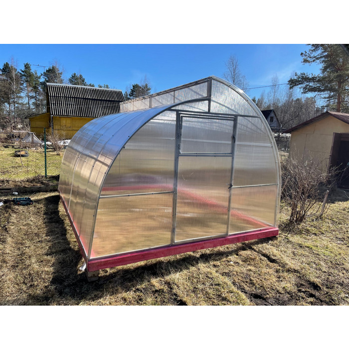 • арочная форма теплицы способствует скатыванию снега в зимний период и равномерному распределению солнечного света, в теплице отсутствуют неосвещенные участки;