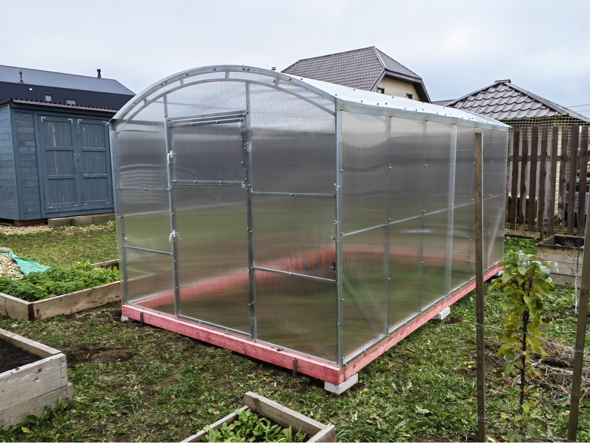 • теплица рекомендована для северных широт с большим количеством осадков, выдерживает порывистые ветра и сильные снегопады, не деформируется под слоем слежавшегося снега толщиной до 90 см;