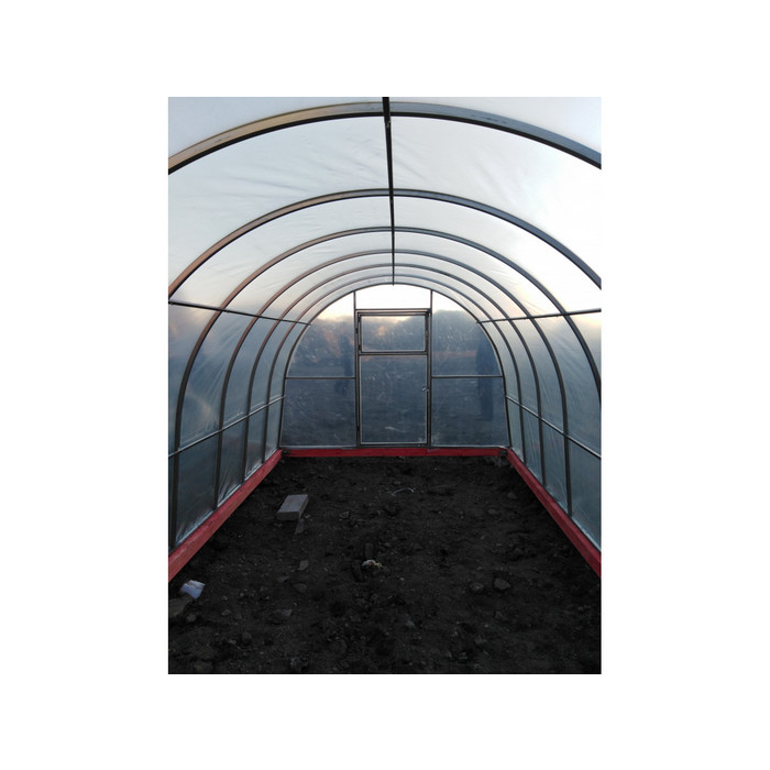 • прочная за счет частой установки дуг в теплице (междуговое расстояние 65 см) и оптимального сечения профильной трубы (25х25 мм)